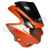 front fairings are manufactured best quality abs plastic granules and point finished with oe quality paint konsai nerolac.the fitment of the product is as per oe specification.this fairing front set composes of 2 pieces one front fairing and one visor glass.this front fairings includes the sticker set,also.